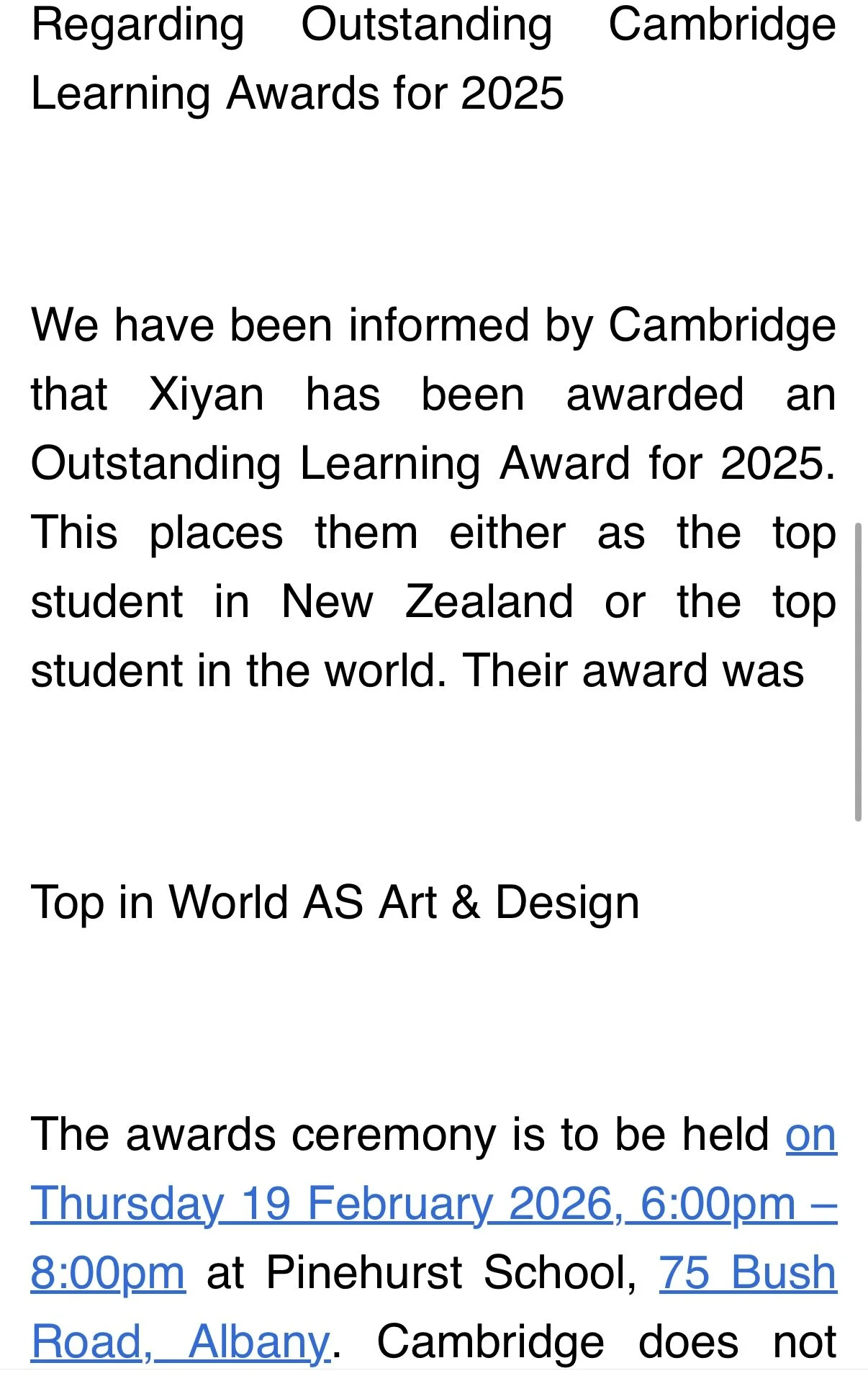 - Pat Hanly Creativity Awards / 新西兰高中生创意类学术奖